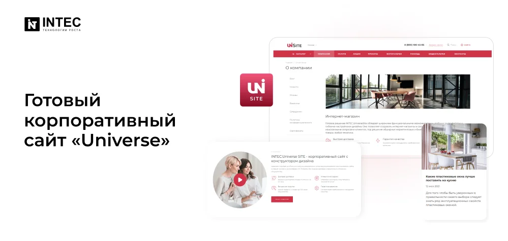 Все это уже есть в готовом решении IntecUniverse SITE, которое позволяет за несколько дней запустить стильный корпоративный сайт.
